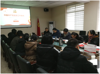 副校长周从标以普通党员身份参加了支部活动,并为支部党员讲了主题为《中国共产党支部工作条例(试行)》的党课。阐述了《条例》制订的背景和意义,并对党支部的职能、设置、基本任务、工作机制、组织生活、支部委员会建设、领导保障、附则等八章内容进行逐章重点解读。
