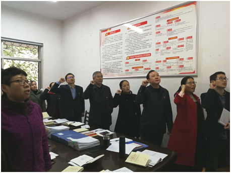 此次活动由支部副书记刘小平主持。首先全体党员重温入党誓词,并集体诵读《中国共产党章程》第八章《党的纪律检查机关》,重点学习了《习近平关于“不忘初心、牢记使命”论述摘编》第四、五部分相关内容。随后刘小平同志带领学习习近平总书记系列重要讲话汇编,《十九届四中全会公报》,以及《朱业宏:将“改”字贯穿主题教育全过程》等相关内容。